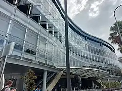 In 2009, Tabcorp, the then-owners of Star City, announced an A$475 million refurbishment and expansion program called Project Star which involved the re-orientation of the casino towards Sydney Harbour, including a new "iconic" entrance as well as a drop-off zone on the harbour side of the casino site. Work began in late 2009 and was completed late 2012.[12] Despite initial cost estimates, according to Echo Entertainment Group CEO, Larry Mullin the final cost was estimated to be around A$961 million.[13] On 16 September 2011, the casino reopened under the name "The Star".[14]