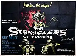 The Stranglers of Bombay is a 1960[3] British adventure horror film directed by Terence Fisher and starring Guy Rolfe, Allan Cuthbertson and Andrew Cruickshank.[4][5] It was written by David Z. Goodman and produced by Hammer Films. Bernard Robinson and Don Mingaye were Art Directors, John Peverall and Tom Walls were Assistant directors, and Roy Ashton did Makeup. The film's working title was The Horror of Thuggee, and later The Stranglers of Bengal, and was originally slated to be filmed in color. Even director Terence Fisher was surprised at how violent and horrific this film turned out, even after the censors worked on it. Filming went from July 6, 1959 through Aug. 27, 1959, and the film premiered at the London Pavillion on Dec. 4th, and was released on Jan. 18, 1960.[6]