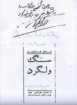 ![]() First page of the 1942 edition with Hedayat's handwriting | |