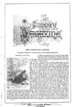 Example title page from an 1867 annual volume of The Sunday Magazine, featuring the serialized novel The Seaboard Parish by George MacDonald