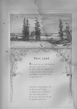 The first poem and eventual Finnish national anthem, Vårt Land.