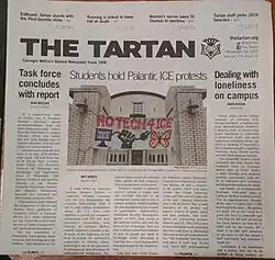 The Tartan (formerly known as The Carnegie Tartan) is the original student newspaper of Carnegie Mellon University. Publishing since 1906, it is one of Carnegie Mellon's largest and oldest student organizations. It currently has over 170 student members, who contribute on a weekly basis. It is funded by advertisements and the university's student activities fee.