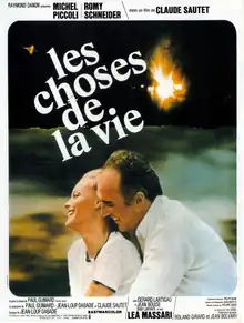 The Things of Life (French: Les Choses de la vie) is a 1970 romantic drama film directed by Claude Sautet, based on the 1967 novel Intersection by Paul Guimard. The film centers around a car accident experienced by Pierre (Michel Piccoli), an architect, and the events before and after it.[2] The film won the Louis Delluc Prize, and had 2,959,682 admissions in France, becoming the eighth highest-earning film of the year.[3]