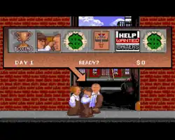 John Cutter designed the game as a kind of board game.[3] The Three Stooges must rescue an old woman's orphanage by earning money in minigames based on various Three Stooges films. These include cracker-eating contests (based on the Stooges short Dutiful But Dumb) and boxing matches (based on the short Punch Drunks).[4] Players select minigames by timing a button press as a hand randomly points to various symbols representing in-game events, including non-interactive events that can raise or lower the Stooges' cash total. Each event takes up one in-game day; players have 30 in-game days to earn as much money as possible.[5]