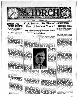 For a period of time in the 20th century, The Torch was not the only publication at St. John's, with St. John's News being published in 1937.[2] On September 28, 1960, St. John's News began publishing as The Downtowner and eventually was discontinued some time in the 1980s.[3]