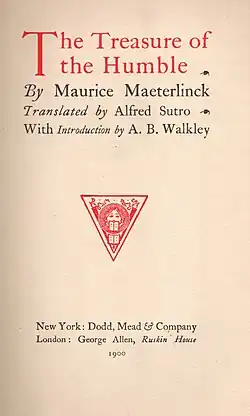 • Maeterlinck, Maurice (1900). The Treasure of the Humble. New York: Dodd, Mead & Company/London: George Allen, Ruskin House.