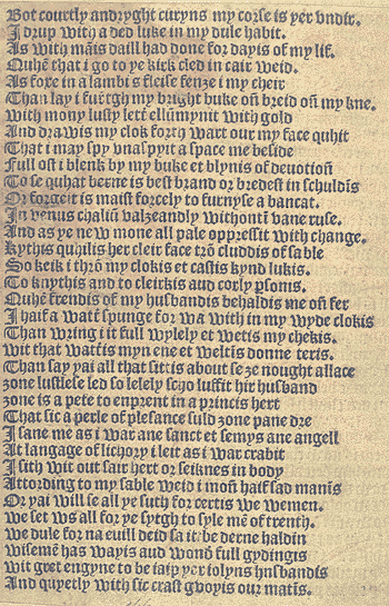 Part of The Tretis Of The Twa Mariit Wemen and the Wedo from the Chepman and Myllar Prints in the National Library of Scotland.