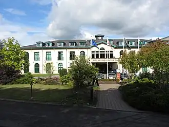 The Football Association of Wales also previously had its training base at the Vale Resort, and commissioned international standard practice football pitches which were built at the facility between 2005 and 2006.[6] The facility was officially opened in 2009, by FIFA president Sepp Blatter.[7] In 2011, at the request of then-Wales manager Gary Speed, the FAW moved the national team's training base to Newport's Celtic Manor Resort, resulting in a £15,000 compensation payout to the Vale Resort.[8] The football facilities at the Vale continue to be used by Cardiff City FC, who share the Vale Pavilion building as their training headquarters with the Cardiff Blues regional rugby side.[9][10]