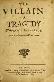 The Villain is a 1662 tragedy by the English writer Thomas Porter. It was originally staged by the Duke's Company at the Lincoln's Inn Fields Theatre in London. The first cast included Thomas Betterton as Monsieur Brisac, Henry Harris as Monsieur Beaupre, John Young as Bontefeu, Samuel Sandford as Maligni and Mary Betterton as Bellmont.[1] William Davenant wrote the epilogue.