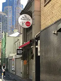 The Waiter's Restaurant is an Italian restaurant in Melbourne, Australia, described as a "Melbourne institution".[1] Founded in 1947 as the Italian Waiter's Club, it was initially a place for waiters (mainly of Italian and Spanish heritage) to have a meal, a drink, and play cards after their work – in breach of the very strict liquor licensing laws in place at the time. As such, it became popular with other late night workers such as reporters and policemen.[1][2]