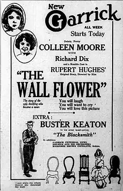 The Wall Flower is a 1922 American silent romantic drama film directed by Rupert Hughes and starring Colleen Moore, Richard Dix, Gertrude Astor, Laura La Plante, and Tom Gallery. The film was released by Goldwyn Pictures in May 1922.[1][2][3]