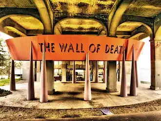 The Wall of Death is a permanently sited public art installation[3] located under the University Bridge in Seattle, alongside the Burke-Gilman Trail and NE 40th Street in the University District. It was designed and built by Mowry Baden and his son, Colin, in 1993.