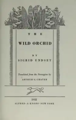 - ^ Undset, Sigrid (1931). The Wild Orchid. Translated by Chater, Arthur G. New York: Alfred A. Knopf.