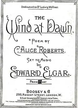 "The Wind at Dawn" is a poem written by Caroline Alice Roberts, and set to music by the English composer Edward Elgar in 1888.