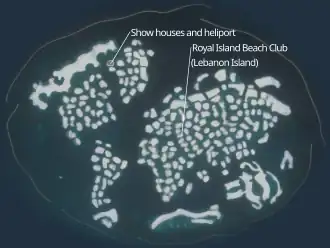 Construction of the 300 islands began in 2003, before being halted due to the 2008 financial crisis.[2] Though 60% of the islands were sold to private contractors in 2008, development on most of the project has not started.[3] As of July 2012, Lebanon Island was completed and was the only island that had so far been developed commercially, being used for private corporate events and public parties. As of late 2013, only two of the islands had been developed. In January 2014, Kleindienst Group announced the launch of "the Heart of Europe" project.[4] By February 2014, JK Properties, one of Kleindienst Group's brands, announced that the project was "well underway".[5] The first of these series of islands will be Europe, Sweden, and Germany, with development led by Kleindienst Group.