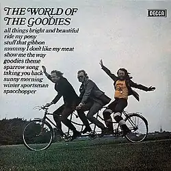 The Goodies Sing Songs From the Goodies was the 1974 debut LP record released by The Goodies. It was initially issued in January 1974 as The Goodies Sing Songs From the Goodies (Decca catalogue number SKL 5175), and was then later reissued in May 1975, retitled as The World of the Goodies with a different cover picture (Decca catalogue number SPA 416), as part of Decca's extensive World Of... series.[1]