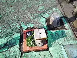![]() "The world's smallest park" surrounded with bricks, and a small monument located nearby | |