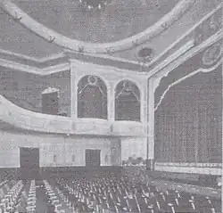 In 1922 the actor and singer Martyn Green appeared here in a tour of Shuffle Along immediately before joining the D'Oyly Carte Opera Company.[15] From 1925 to 1926 the theatre was owned by local businessman W. A. 'Willie' Rubick (1869-1926)[16] on whose death the theatre transferred to his widow who sold it in 1928.[17] During the 1930s the theatre was owned by Town & Country Theatres who also owned the Duchess Theatre in London. The actor James Mason is believed to have made his stage début here in 1931 in The Rascal.[1] However, some sources claim this was at the nearby Hippodrome Theatre.[18] The Theatre Royal went bankrupt in the 1930s and was reopened as a Variety Theatre by Ben Garcia in 1940 who managed it during World War II. Aldershot being a Garrison Town, much of the audience at this time was male leading to a number of nude revues being held at the theatre. Other acts at this time included Tod Slaughter in the melodrama Jack the Ripper, Billy Reid and his accordion band with Dorothy Squires as his vocalist, and Phyllis Dixey in her revue Peek A Boo.[6]
