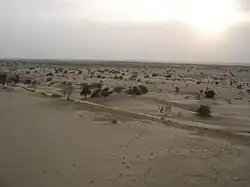 In December 2016, a photo shoot for the film was held at Balu Mahendra Studios in Chennai with fashion photographer Venket Ram capturing the stills of Karthi's look in the film.[21] The shooting of the film kickstarted on 17 January 2017,[22] with major sequences being shot in Chennai, and the team later headed to North India for filming several sequences. In mid-February 2017, the team headed to Rajasthan for shooting action scenes and the schedule went on for 40 days.[23][24] Later, another 40-day schedule was held in Bhuj in mid-March 2017.[25] To make the film as authentic as possible, Vinoth actively hired artistes from the regions and insisted on shooting in such locations, rather than replicating the terrains in Chennai or in studios.[26][27] As the film takes place for more than a decade beginning from the 1980s, Vinoth had to shoot at well-developed places, instead of constructing sets as Vinoth said that "the storyboard has nearly 150 sites and it is impossible to construct sets in many locations, as a result went on a location scouting for many places which took a long time".[28]