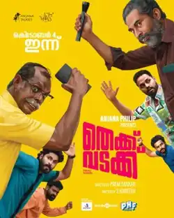 Thekku Vadakku is a 2024 Indian Malayalam-language satirical comedy-drama film starring Suraj Venjaramoodu and Vinayakan in leading roles. The film is about a bitter rivalry between a retired KSEB overseer and a rice mill owner fighting for a land's ownership.[1][2]