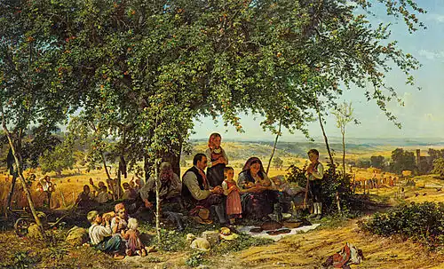 He gained his widest audience as an illustrator of the early works of Ottilie Wildermuth. His best known work, "Noon Prayer at the Harvest", now at the Staatsgalerie Stuttgart, was originally exhibited at the Exposition Universelle (1867). Most of his paintings are in the Late Romantic style, and many are of a religious nature.[3]