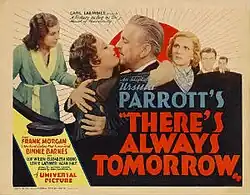 There's Always Tomorrow is a 1934 American drama film directed by Edward Sloman and written by William Hurlbut. The film stars Frank Morgan, Binnie Barnes, Lois Wilson, Louise Latimer, Elizabeth Young and Alan Hale Sr. The film was released on November 1, 1934, by Universal Pictures.[2][3][4]