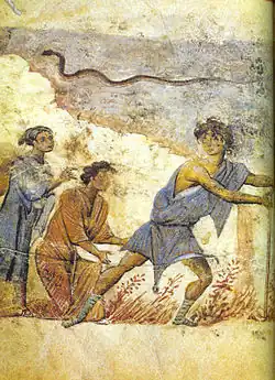 It has been noted that Theriaca is a poem not solely concerned with its intended subject matter, given its "arcane language".[5] Nicander makes references to a drakōn, however it is likely this term is utilized to refer to an Aesculapian snake rather than a dragon in the contemporary perception of the word.[6]