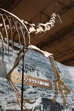 - ^ a b Senter, P.; James, R. H. (2010). "Hip heights of the gigantic theropod dinosaurs Deinocheirus mirificus and Therizinosaurus cheloniformis, and implications for museum mounting and paleoecology" (PDF). Bulletin of Gunma Museum of Natural History (14): 1−10.