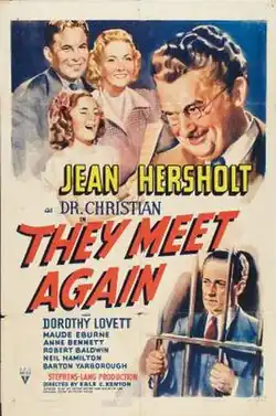 They Meet Again is a 1941 American drama film directed by Erle C. Kenton and starring Jean Hersholt, Dorothy Lovett, and Robert Baldwin.[2] It is one of the series of six Dr. Christian films released by RKO Pictures.