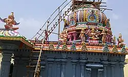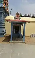 It is located close to Thirunangur, a small village, 8 km east of Sirkali en route to Thiruvenkadu. The temple complex has a single prakaram (closed precincts of a temple) and separate shrines for Tamariyan Kelvan Perumal facing west, Shenbagavalli Thayar facing east and Arjuna. The vimana of the temple is called Narayana Vimanam and water body associated with the temple is called Katka Theertham.[1] The festival images of Tamaraiyan Kalvan, Krishna and Rama, are stored in the shrine of Tamarayan Kelvan. This is the only temple where the images of Rama and Krishna are housed in the same shrine.[5] The main gateway tower, the rajagopuram faces west and the temple is surrounded by walls. The temple tank is located in the southern side outside the temple complex. There is a separate hall in the temple complex that houses the chariot and festival chariots.[2] The festival deity has four consorts namely, Sridevi, Bhudevi, Niladevi, and Jambavati.[6] Following the legend of sage Agastya, a separate shrine of Agastya was built during the consecration of the temple in May 2015.[5]