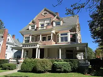 It was built in 1897 by esteemed local architect Ephraim B. Potter, and is a massive, 2+1⁄2-story, square residential building with Queen Anne and Colonial Revival style design elements. It features a large tripartite gambrel-roofed dormer.[2]