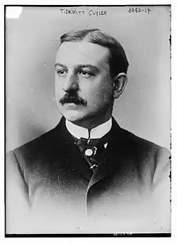- ^ a b c d e f g h Times, Special to The New York (3 November 1922). "T. DE WITT CUYLER DIES ON A TRAIN; Head of Railroad Executives Victim of Apoplexy in Private Car Near Philadelphia. HAD SPOKEN IN ROCHESTER Noted Lawyer Led Fight in Opposing Seniority Demands of Shopmen in Recent Strike". The New York Times. Retrieved 24 June 2022.