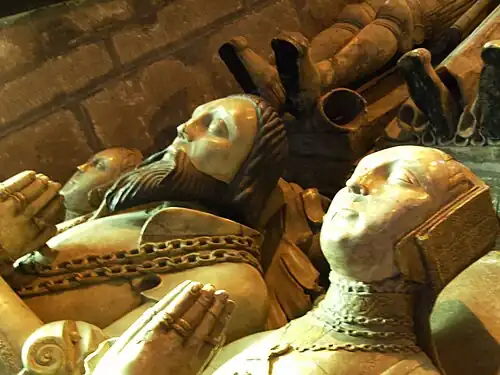 Sir Thomas died on 27 May 1560 and was buried in Brewood parish church. An impressive tomb was later constructed, with life-sized effigies of himself and both his wives.