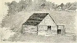 Their first child, a daughter named Sarah Lincoln, was born on February 10, 1807, near Elizabethtown, Kentucky, at Mill Creek.[15][22] By early 1809, Lincoln bought another farm, 300-acre (1.2 km2), near Hodgenville at Nolin Creek, located 14 miles southeast of Elizabethtown and near the home of Elizabeth (Betsy) and Thomas Sparrow.[15][22] Although their cabin was a standard dirt floor, one room log cabin, their property was named Sinking Spring Farm for the "magnificent spring that bubbled from the bottom of a deep cave."[15] On February 12, 1809, the Lincolns' second child, a son named Abraham Lincoln, was born.