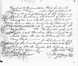 Noteworthy ancestors include Samuel's grandson, Mordecai (1686–1736) who married Hannah Salter from a prominent political family, and made a name for himself in Pennsylvania society as a wealthy landowner and ironmaster.[5] Mordecai and Hannah's son, John Lincoln (1716–1788) settled in Rockingham County, Virginia and built a large, prosperous farm nestled in the Shenandoah Valley.[6]