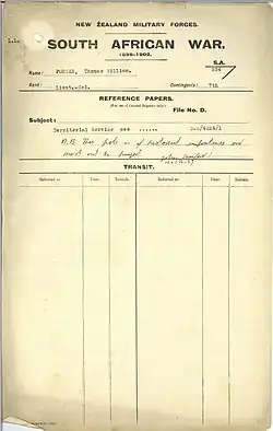 Thomas William Porter, New Zealand Military Forces personnel file (1899–1902)