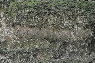 The Thompson Brothers Rock Art is an inscribed rock located within Giant City State Park in Union County, Illinois. Four names are carved into the rock, all but possibly one of which were inscribed by Union soldiers or supporters during the Civil War. The two most prominent signatures belong to brothers Albert S. and T. W. Thompson; the former was a Union soldier, while the latter served as Deputy Provost Marshal and was responsible for locating Union deserters. Union soldier Thomas L. Bailey also carved his name into the rock; the fourth name, A. Parker, may have been either a fellow soldier or a resident of the area who added his name after the war. The rock was carved at a time when Union supporters and Southern sympathizers fought for control of southern Illinois, and as the Thompson family were among the most prominent Union supporters, it represents an attempt to physically claim the area for the North. The Confederate sympathizers' inability to deface the names signifies their gradual loss of power in the area. The rock is now one of the few surviving Civil War sites in Illinois.[2]