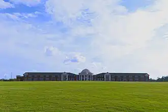 By 2011, the City of Alabaster had determined they wanted to create a city school system and bring Thompson with it. The school system was completely split on July 1, 2013, being a part of Alabaster City Schools.[5] This split happened near the same time Pelham City Schools became independent on July 1, 2014.[6] This allowed Shelby County Schools time to readjust school zones and set up new zoning for Helena High School which split Pelham's student body. Some communities such as Saginaw and Brantleyville could no longer attend Thompson as the school system was zoned for city limits only. A new rush of people began coming into Alabaster and Pelham after hearing the schools had become independent, now overwhelming the 1987 building which was originally designed for 800 students, but housed 1900 in its last year as a high school. A new 360,000 square foot building was soon built on 300 acres of land, the first day for students was February 26, 2018.[7] The school is easily identifiable by the front rotunda and water fountain. Since the construction of the new school, Thompson has seen renewed interest in athletics funding, now primarily dominating the football scene.[8]