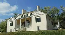 However, Huntley never served as a permanent residence for Mason, in part because his wife preferred town life and never grew fond of Huntley. Mason owned a number of houses in Alexandria and in the early 1830s acquired Colross, which had been one of the new capitol city's most sophisticated Federal style mansions and occupied an entire city block. John Potts, secretary of the Potomac Canal Company, had begun construction between 1799 and 1802, but ran into financial problems. Massachusetts born merchant, freemason and city councillor Jonathan Swift acquired the property, which he called "Belle Aire" and where he lived before his death in August 1824. While one chatty book of legends claimed Mason acquired Colross during a game of cards with Lee Massey Alexander, a later archeological report which examined Deed Book V-2:186 indicated a more traditional purchase.[12] Mason renamed the property Colross (probably after a Scottish manor) added a brick wall around the property, as well as added rooms and a Greek Revival style portico.[4][6] His brother Richard Chichester Mason, by contrast, moved his medical practice to his Fairfax County property and would serve several terms as one of Fairfax County's delegates in the Virginia House of Delegates.