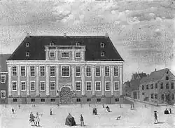 Originally known as the Juel Mansion, the house was built from 1683 to 1686 for the Danish naval officer Niels Juel. It was the second building which was completed on Kongens Nytorv which had been laid out by Christian V of Denmark in the years following his coronation in 1670 inspired by the royal squares of Paris.[1] Niels Juel's victory in the Battle of Køge Bay had won him fame and wealth. His new mansion was designed by Lambert van Haven as an L-shaped building in the Dutch Baroque style.[2]