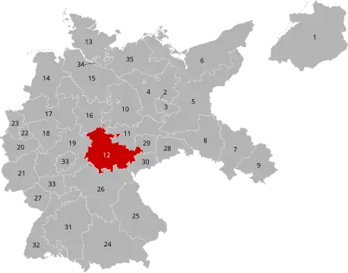 It comprised the state of Thuringia as well as the Regierungsbezirk Erfurt from the Prussian province of Saxony and Schmalkalden district from the province of Hesse-Nassau. It was constituency 12 in the numbering scheme.[1]