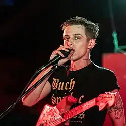 Thus Love is an American self-styled queer post-punk band from Brattleboro, Vermont,[1] formed in late 2019 during the Covid-19 pandemic, who are noted for their unusual headgear and the recording of their first album Memorial. The three members of the band, vocalist and guitarist Echo Mars (they/them),[2] drummer Lu Racine (he/they) and, as recently as 2023, newest member on bass Ally Juleen (she/they), with former bassist Nathaniel van Osdol (they/them) stepping aside. Shane Blank (he/him) will also be joining the band on guitar and synth.[3][4][5][6]