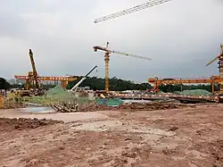 On 26 December 2017, the Line 13 station and the switchback line behind the station broke ground, marking the official start of the second phase of Line 13.[3] In March 2019, the second phase of enclosure construction began.[17] In September 2020, the main structure of the station and the transfer passageway was topped out.[18]