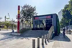 On 31 July 2018, the main structure of the station was capped, making it the last capped station on Line 21.[11] On 20 December 2019, the Line 11/21 station was put into use with the opening of the remaining section of Line 21.[1] On 19 April 2021, Exit E2 opened.[12]