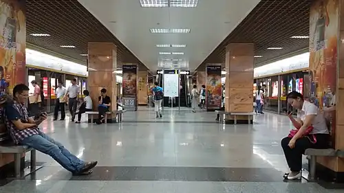 Tianhe Sports Center Station (simplified Chinese: 体育中心站; traditional Chinese: 體育中心站; Jyutping: tai2 juk6 zung1 sam1 zaam6; Cantonese Yale: Táiyuhk Jūngsām Jaahm) is a station on Line 1 of the Guangzhou Metro that started operations on 28 June 1999. It is situated under Tiyu East Road (体育东路) next to the Tianhe Sports Center in the Tianhe District, near Guangzhou Computer Town (广州电脑城).[1][2][3]