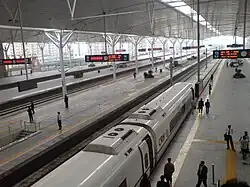 Tianjin railway station (Chinese: 天津站; pinyin: Tiānjīn Zhàn), also translated as Tianjin station, is the principal railway station in Tianjin, China. It was established in 1888, rebuilt in 1987–1988, and restructured in 2007–2008. Its Chinese big title was written by Deng Xiaoping in 1988, for celebrating the 100th anniversary of its founding.[2]
