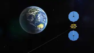 CNSA launched the Tianwen-2 probe using a Long March 3B carrier rocket on 28 May 2025 from the Xichang Satellite Launch Center in southwest China.[8] The probe uses solar electric propulsion for maneuvering between its many objectives.[9] It is planned to explore the co-orbital near-Earth asteroid 469219 Kamoʻoalewa and the main-belt comet 311P/PANSTARRS.[10] The spacecraft will rendezvous with Kamoʻoalewa and conduct remote sensing observations in orbit, before landing on the asteroid to collect a sample of 100 g (3.5 oz) of regolith.[1][11] Explosives will be used to expose potential subsurface volatiles for detection.[4]