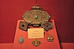 The Tibet Museum (Tibetan: བོད་ལྗྗོངས་རྟེན་རྫས་བཤམས་མཛོད་ཁང་ Chinese: 西藏博物馆) is the official museum of the Tibet Autonomous Region of China in Lhasa. Inaugurated on October 5, 1999, it is the first large, modern museum in the Tibet Autonomous Region.[1] It has a collection of more than 520,000 artifacts, including pottery, jade, and Buddha statues, attracting hundreds of thousands of visitors every year.[2] It has a collection of around 1,000 artifacts permanently on display related to the cultural history of Tibet, from examples of Tibetan art to architectural design throughout history such as Tibetan doors and beams. In order to fill the museum the Tibet aristocracy and religious establishment had their property confiscated by the Chinese Government (Harris 2013:67).[3]