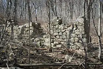 The Tillinghast Mill Site is an historic industrial site in East Greenwich, Rhode Island. The site is the location of a cotton mill established in 1812 most likely by Allin Tillinghast and Joseph Joslyn Tillinghast.[3] The mill was more formally known as the Mount Hope Factory. The mill initially produced cotton yarn, but later made printed cloth, carpet, and twine. At its height the area included 25 mill worker houses as well as the waterworks, wood frame mill structure, and four story factory.[3] The mill was in operation until at least 1905,[3] but now only the foundational remnants of the mill and the waterworks remain.[2]