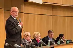Burgess ran for mayor in the 2013 mayoral election, looking to unseat incumbent Mike McGinn, but dropped out before the primary filing deadline.[27] He endorsed Ed Murray,[28] who later was elected mayor. Burgess was named Council President from 2014 to 2015.[29] He was elected to a third term in 2015, defeating Jon Grant with over 60 percent of votes.[30] Burgess announced that he would not seek re-election in 2017, as he was one of the most senior councilmembers and sought to step aside and "move on".[31]